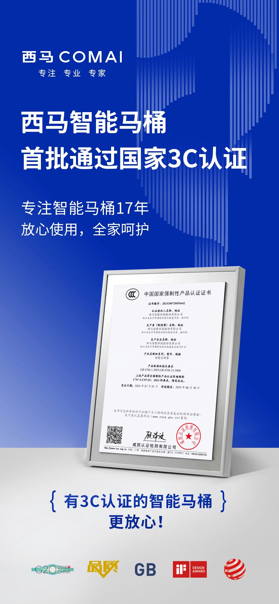 西馬智能馬桶首批通過國家3C認證